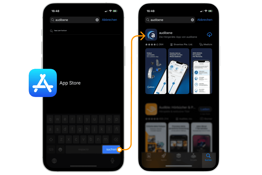 Sollten Sie Fragen nur zum Download der App haben, besuchen Sie unsere Seite www.audibene.ch/app/