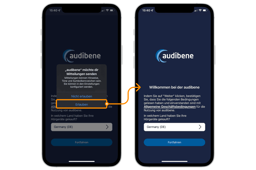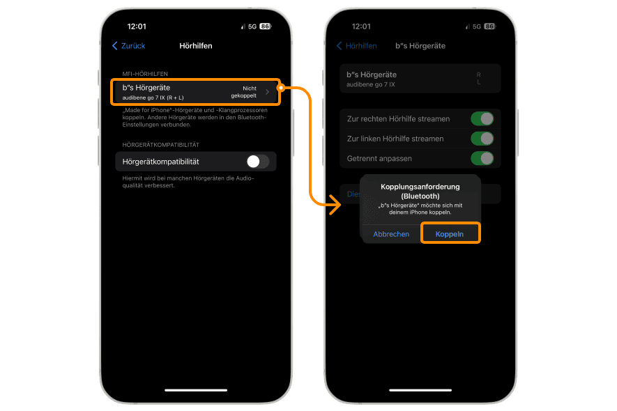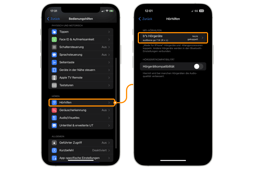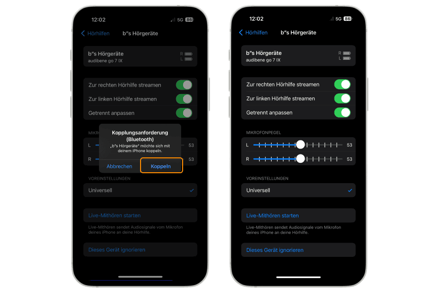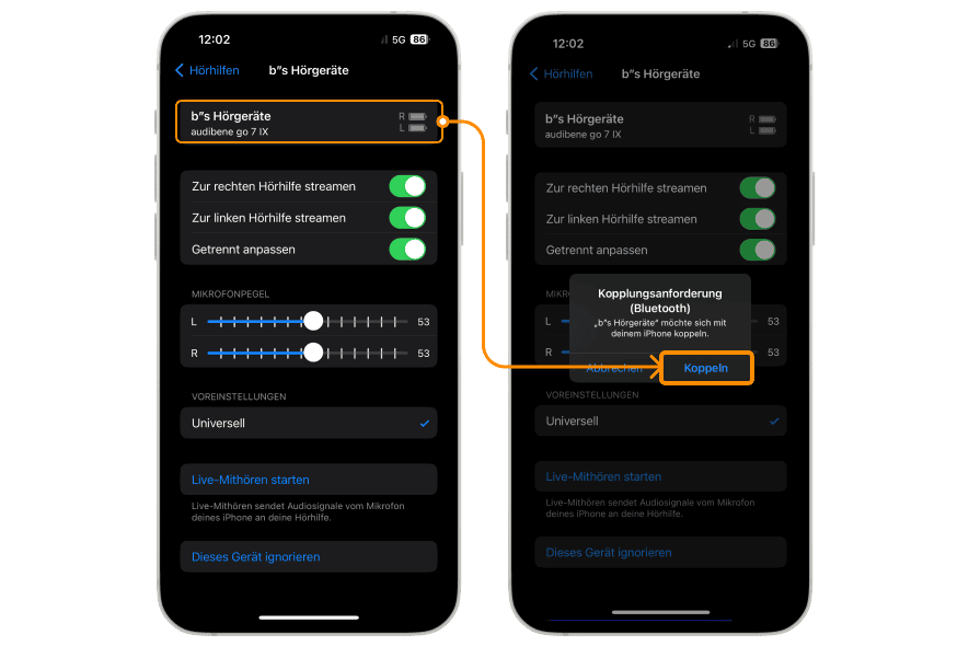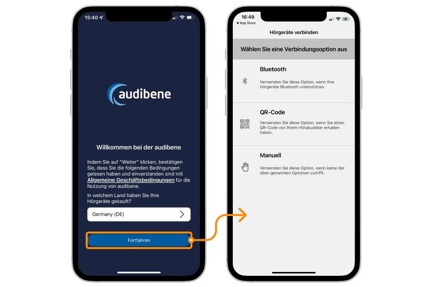 2. Hörgeräte mit der audibene App auf dem iPhone verbinden
