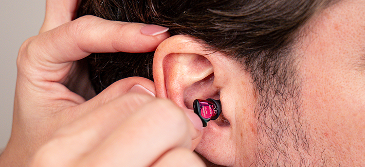 5. Ziehen Sie mit der anderen Hand Ihr Ohrläppchen leicht nach unten und drücken Sie das Ohrpassstück fest ins Ohr.